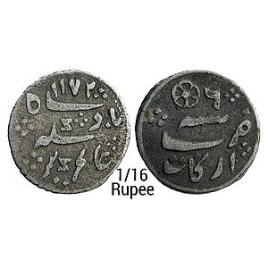 EIC Madras Presidency INO Alamgir II Arkat Mint Silver 1/16 Rupee