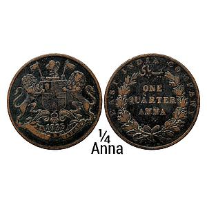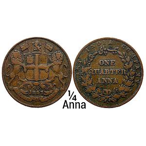 EIC Uniform Coinage 1857 AD Birmingham Mint Copper 1/4 Anna