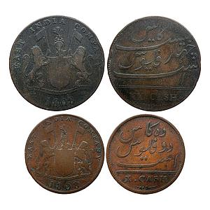 EIC Madras Presidency AD 1808 Set of 2 Coins Copper XX Cash Copper X Cash