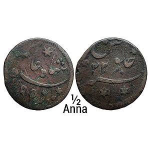 EIC Bengal Presidency Princeps Coinage INO Shah Alam II Falta Mint Copper 1/2 Anna