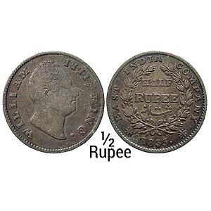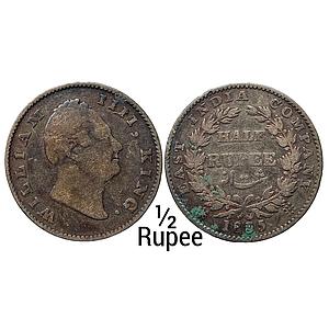 EIC William IV 1835 AD Bombay Mint No initials 20 Berries 10L+10R Silver 1/2 Rupee