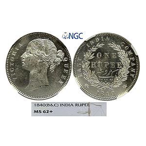 EIC Victoria Queen 1840 AD B&C Divided Legend 28 Berry Silver Rupee