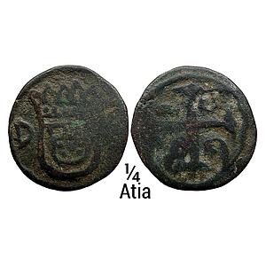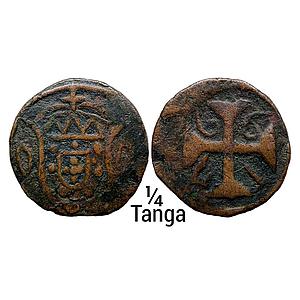 Indo Portuguese Carlos I Set of 4 Coins Copper 1/2 Tanga & 1/4 Tanga & 1/8 Tanga & 1/12 Tanga