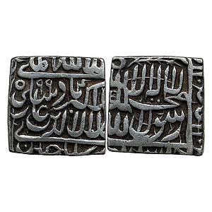 Mughal Akbar Urdu Zafar Qarin Mint Silver Square Rupee