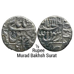 Mughal Murad Bakhsh Surat Mint Silver 1/2 Rupee