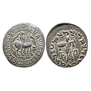 Ancient Bactria Yueh-Chi tribes Sapalbizes Silver Double Obol