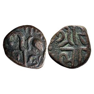 Hindu Medieval Chauhans of Ajmer Sambhar Somalekha Somala Devi Queen of Ajaya Deva Copper Unit