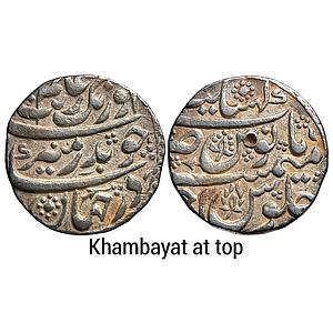 Mughal Aurangzeb Khambayat Mint Silver Rupee