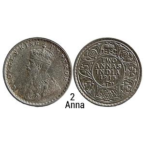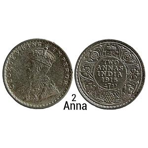 British India George V 1915 AD Calcutta Mint no dot Silver 2 Annas