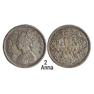 British India Victoria Queen 1874 AD Bombay Mint Obv A Rev I No mint mark Silver 2 Annas