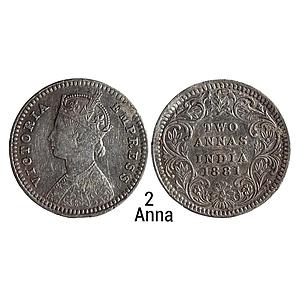 British India Victoria Empress 1881 AD Calcutta Mint Obv B Rev II C incuse Silver 2 Annas
