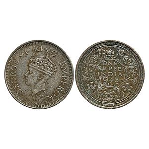 British India George VI 1943 AD Bombay Mint Large Head Half Silver Rupee