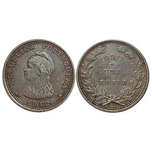 Indo Portuguese Set of 3 Coins Silver (.917) Rupia Copper-Nickel 4 Tangas & Copper-Nickel 2 Tangas
