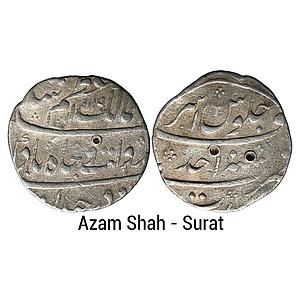 Mughal Azam Shah Surat Mint Silver Rupee