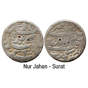 Mughal Nur Jahan Surat Mint Silver Rupee