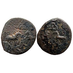 Ancient Kushans Wima Takto Soter Megas Imitating Heliokles I of Bactrian Kingdom Copper Tetradrachm