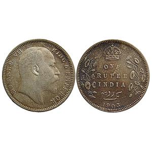 British India Edward VII 1903 AD Calcutta Mint Urdu error with 4 dots on the left instead of the normally seen 5 dots Silver Rupee