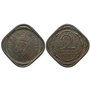 British India George VI Calcutta Mint head type II Cupro-Nickel 2 Annas