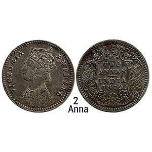 British India Victoria Empress 1879 AD Calcutta Mint Obv B Rev II C incuse Silver 2 Annas
