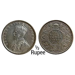 British India George V 1930 AD Calcutta Mint No dot Elephant F Silver 1/2 Rupee