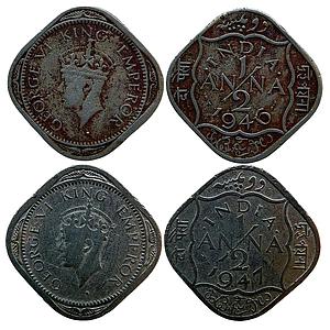 British India George VI 1939 AD 1941 AD Set of 2 Coins Cupro-Nickel 1 Anna