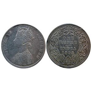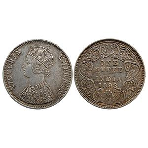 British India Victoria Empress 1883 AD Bombay Mint Obv A3 Rev I B raised Silver Rupee
