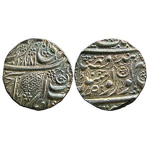 IK Farrukhabad Ahmad Khan Bangash INO Shah Alam II Ahmadnagar Farrukhabad Mint Silver Rupee