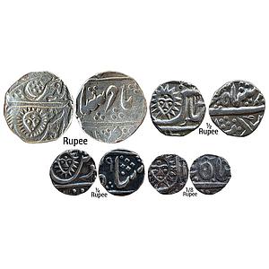 IPS Indore State INO Shah Alam II Malharnagar Mint Set of 4 coins Silver Rupee 1/2 Rupee 1/4 Rupee 1/8 Rupee