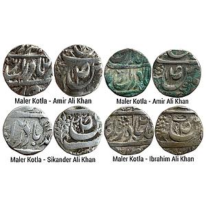 IPS Cis-Sutlej States Maler Kotla Amir Ali Khan Sikander Ali Khan Nawab Muhammad Ibrahim Ali Khan Bahadur Set of 4 Coins Silver Rupee