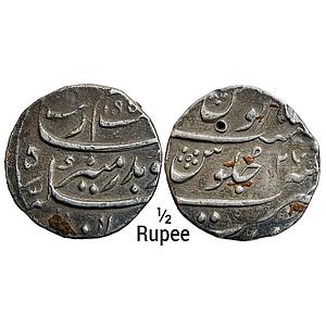 Mughal Aurangzeb Surat Mint Silver 1/2 Rupee