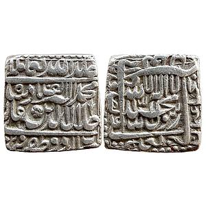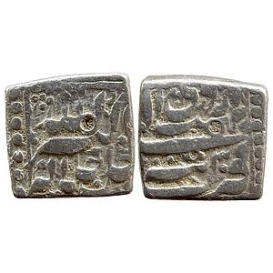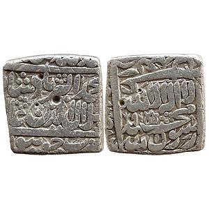 Mughal Akbar Urdu Zafar Qarin Mint Silver Square Rupee