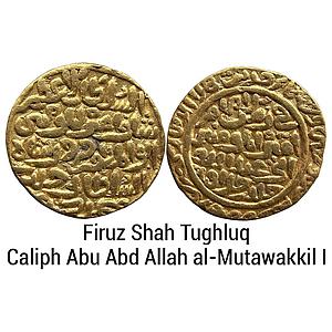 Delhi Sultan Firuz Shah Tughluq with the name of the Caliph Abu Abd Allah al-Mutawakkil I Gold Tanka