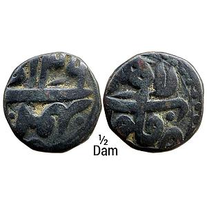 Mughal Akbar Lahore Mint Ilahi type Month Bahman Aquarius Copper 1/2 Dam